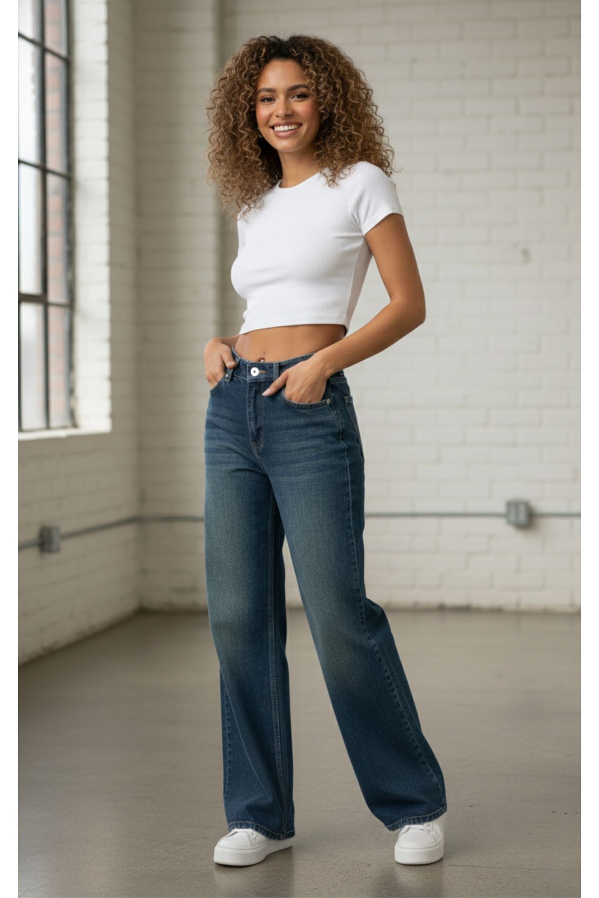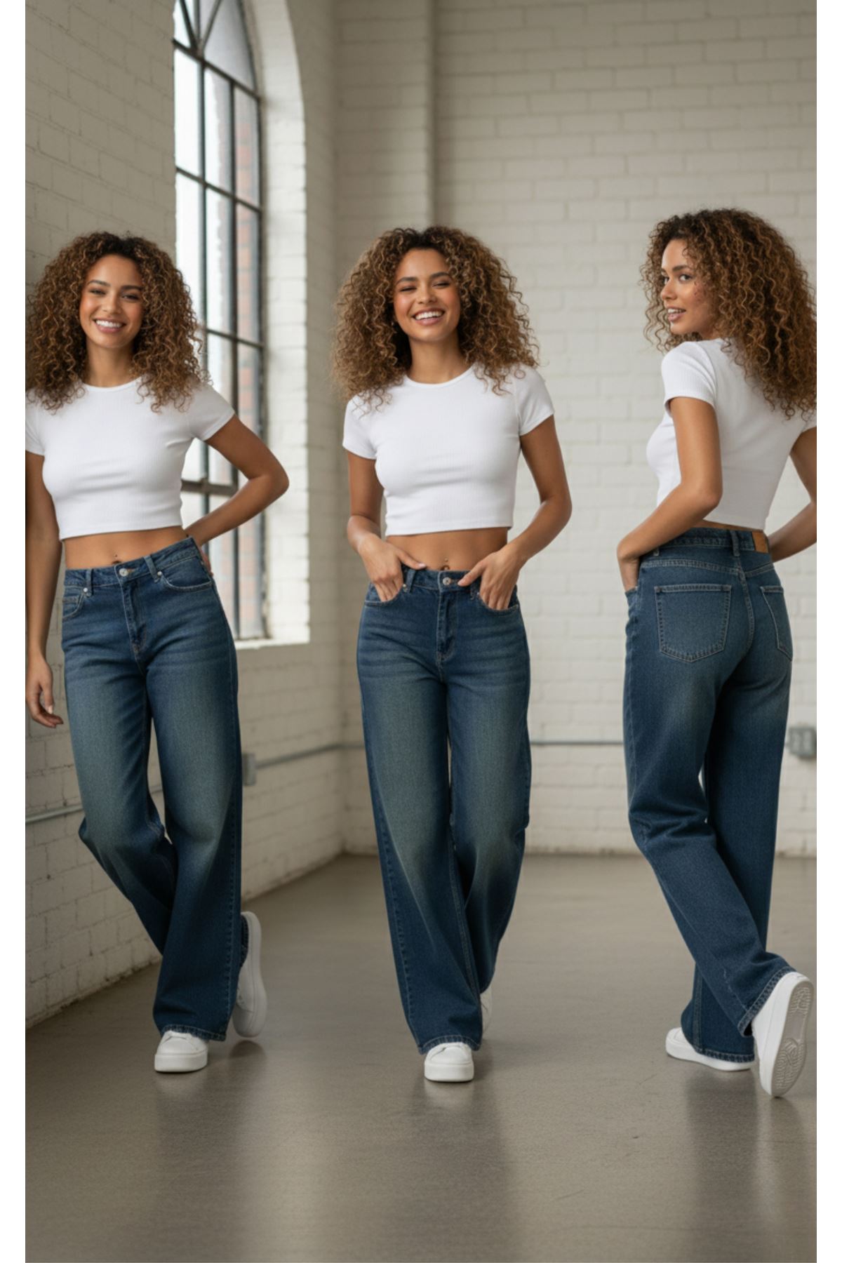 palazzo jean, kadın palazzo pantolon, geniş paça kot, yüksek bel jean, Alanur Fashion, dark blue denim, rahat kesim pantolon, trend kadın jean, palazzo denim, şık jean modelleri