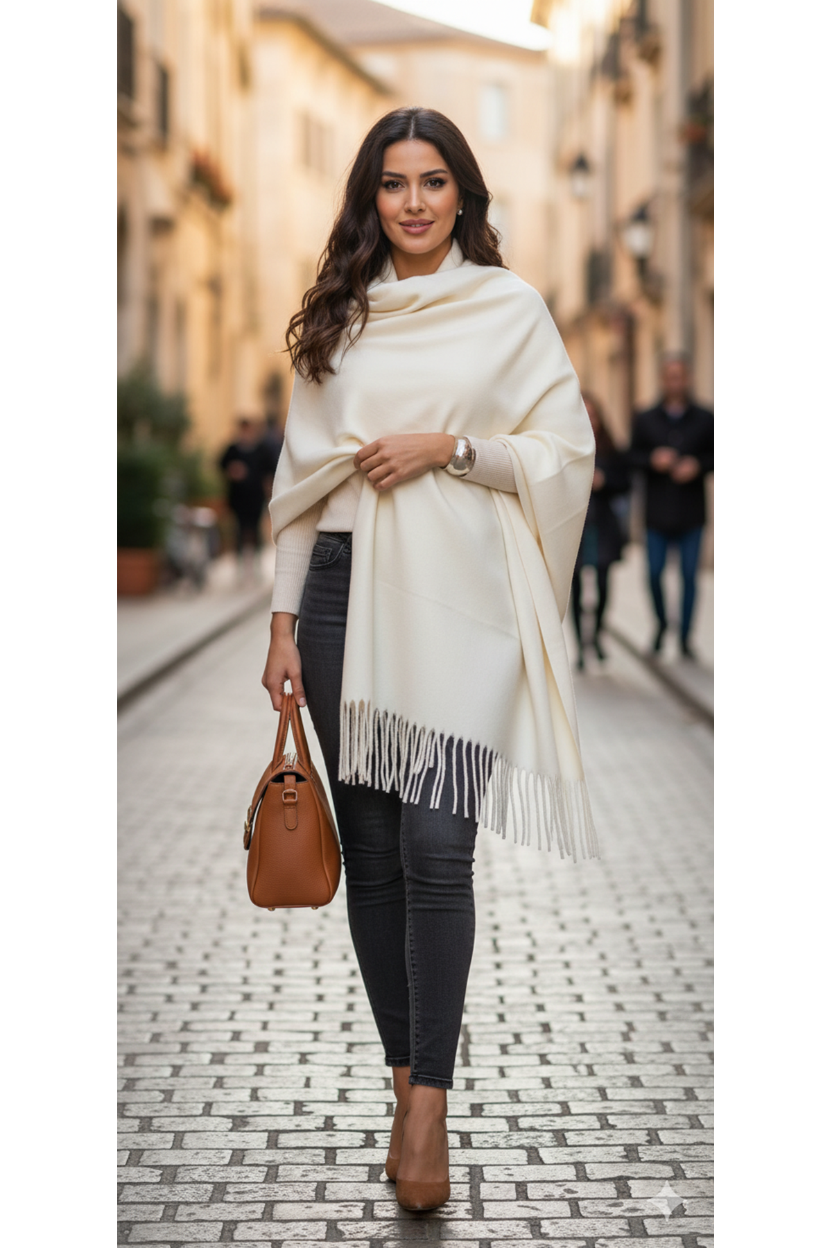 zarafetin en sade haliyle buluştuğu Mopia Noir Fringe Shawl, her mevsim şıklığını korumak isteyen kadınlar için tasarlandı.