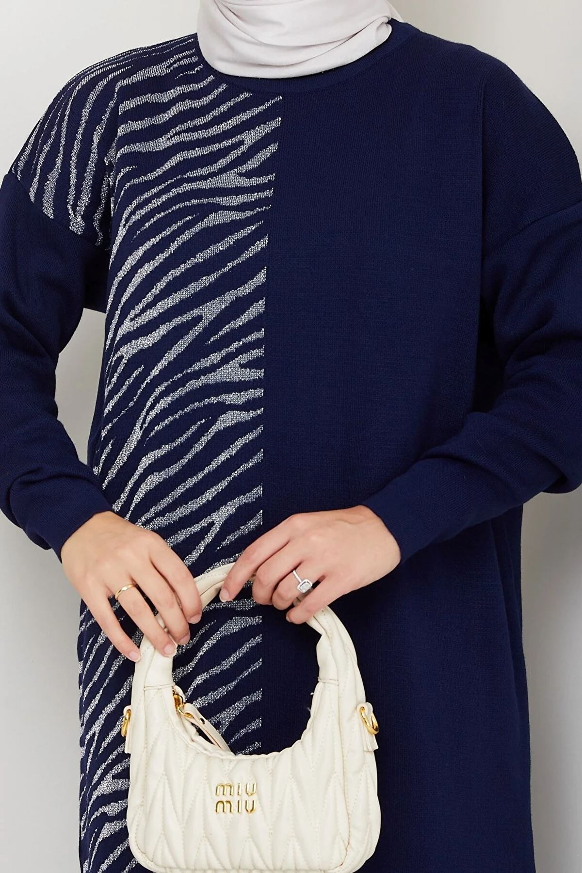 Zebra Desen Detaylı Triko Takım – Lacivert
